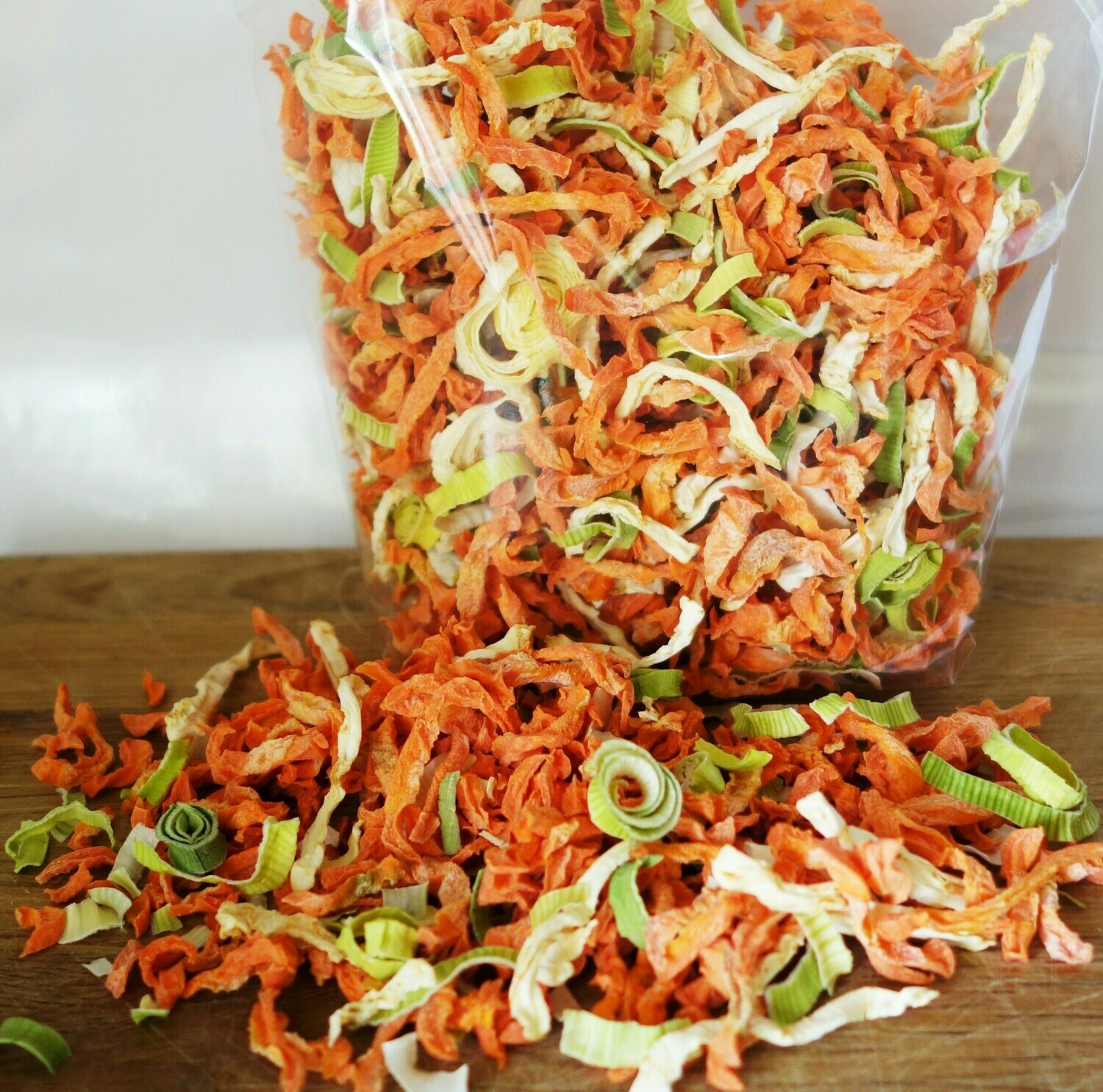 Schonend getrocknetes Seeländer Gemüse: Rüebli, Lauch, SELLERIE
